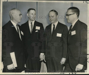 Conferring at the third annual Miscroscopy Symposium sponsored by the Louisiana Society for Electron Miscroscopy at the Royal Orleans Hotel are, from left, Ralph W.G. Wyckoff of the University of Arizona in Tuecson; Eddie B. Prestridge of Baton Rouge, society chairman; William M. Hess of the Technology and Planning Division, Columbian Carbon Company in Princeton, New Jersey and James C. Harkin, New Orleans, chairman-elect of the society.