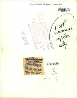 Harahan Businessmen's Association - Dawson Womack, President. Dawson Womack was elected president of the Harahan Businessmen's Association and installed Thursday night in ceremonies at Nancy's Steak House, 4800 Jefferson hwy. Other officers include Carlo Ferrara, vice president; Lawrence Oser, secretary, and Frank Greco, treasurer.