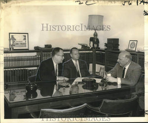 Discussing Expansion Plans in the conference room of their new offices are officials of Scharff and Jones, Incorporated. From left are John J. Zollinger Jr., James E. Roddy and Ike D. Scharff. Scharff and Jones, Incorporated, one of the south's leading investment houses, today announced the formal opening of their larger offices at 140 Carondelet. Firm officials said the constant growth of the company's accounts made it necessary to move into larger quarters.
