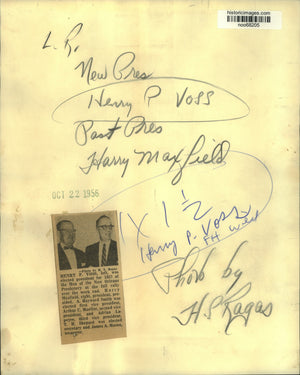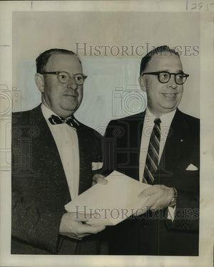 Henry P. Voss, left, was elected president for 1957 of the Men of the New Orleans Presbytery at the fall rally over the week end. Harry Maxfield, right, president, presided. A. Hayward Smith was elected first vice president, Arthur C. Mueller, second vice president, and Adrian Lapeyre, third vice president. T.H. Shepard was elected secretary and James A. Mason, treasurer.