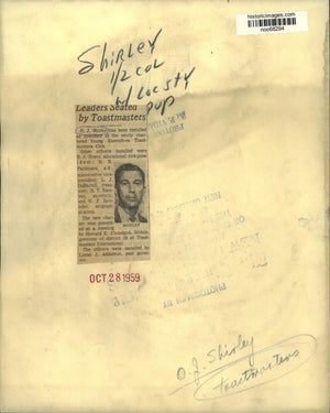 1959 Press Photo O.J. Shirley, president of Young Executives Toastmasters Club