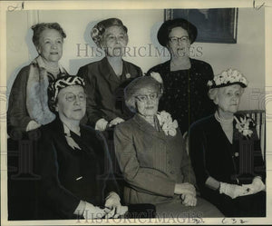 Officers of the 1960-61 Season of Le Petit Salon posed for this picture at tea following the Salon's annual meeting. The newly re-elected officers include (standing, from left), Mrs. Ira B. Harkey, recording secretary; Mrs. Yorke P. Nicholson, 3rd vice-president; and Mrs. Furman B. Pearce, 2nd vice-president, and (seated, from left), Mrs. Lawrence Himel, 1st vice-president, and Mrs. William Tompkins West, president, and Miss Mary Wing Tebo, who is honorary president. Mrs. Charles Lafayette Brown, not pictured, is the treasurer for the coming season. The gathering took place Thursday afternoon last in the Salon's clubrooms in St. Peter street.