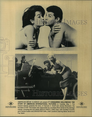 1957 Press Photo Scenes from Beach Party 1963 and Dragstrip Girl 1957.