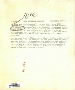 1979 Press Photo Ron Howard and Candy Clark star in More American Graffiti.