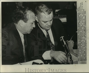 Leonard Goldenson, left, president of American Broadcasting, Paramount Theatre, and Oliver Treyz, president of ABC Television, confer at a Federal Communications Commission hearing today in Washington. They testified there is no need for new laws to protect the public against poor or deceptive radio-television programs.