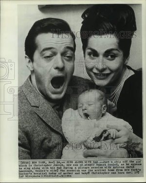 1964 Press Photo Robert Goulet & Carol Lawrence with new son in New York