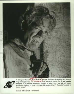 A distinguished novelist (Boris Karloff, pictured) researches the mystery of a strangler hung twenty years ago and discovers he is the man he is looking for, in "The Haunted Strangler" to be telecast Wednesday, October 19 from 9:01-11 pm ET and repeats Wednesday, October 19 from 1:01-3 am, ET, as part of Sci-Fi Channel's "Legends of Horror Month."