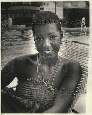 1977 Press Photo Twanna Kilgore, sitting by the pool - nop42469