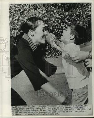 1964 Press Photo Christian Devi Brando leaps joyfully to his mother Anna Kashfi