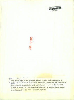 Jason Miller stars as an acclaimed scientist whose work, attempting to create new life forms in a university laboratory, dramatizes the controversy about scientific responsibility and man's future in a world he may not be able to handle, in "The Henderson Monster," a probing drama special to be broadcast on the CBS Television Network.