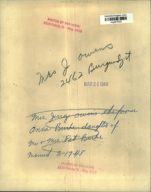 Mrs. Jerry Owens, the former Anna Burke daughter of Mr. and Mrs. Pat Burke, married 3-17-48.