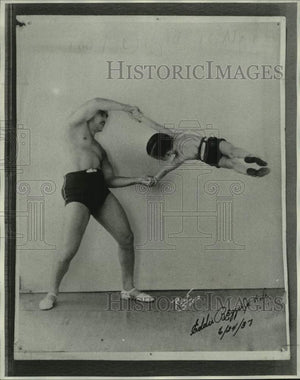 1937 Press Photo Eddie Reggis, Jr. & Sr. Eddie Sr. gives his son a lift