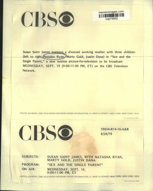 Susan Saint James portrays a divorced working mother with three children (left to right, Natasha Ryan, Marty Gold, Justin Dana) in "Sex and the Single Parent," a new motion picture-for-television to be broadcast Wednesday, September 19 (9:00-11:00 pm, ET) on the CBS Television Network.