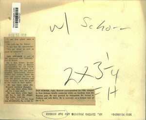 "I see him about once a week. "He calls me Mr. Schorr. "I call him Mr. Khrushchev, "We get along as well as could be expected." The Speaker is one of 165 Americans who "officially" live in Russia. He is Dan Schorr, 41-year-old bachelor, who, as Moscow correspondent for the Columbia Broadcasting System, is a one-man gang who has photographed, interviewed, tape-recorded and written about the men who control the lives of over 200 million Russians and who, in effect, hold the peace of the world in their hands. Dan Schorr, right, Moscow correspondent for CBS, stopped in New Orleans briefly yesterday while on vacation form his Russian post. He was greeted by Orleanians Dr. Irving A. Fosberg and wife Betty. He is currently on a lecture tour of the United States.