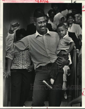 1990 Press Photo John "Hot Rod" Williams with son leaving State Court House
