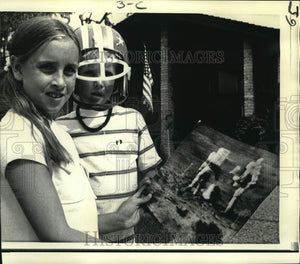 1971 Press Photo Apollo 15 Pilot David Scott's Kids with Picture of Moon Walk
