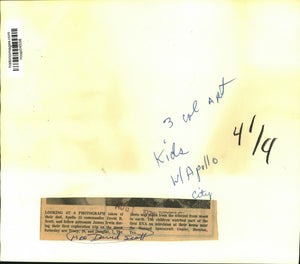 Looking at a photograph taken of their dad, Apollo 15 commander David R. Scott, and fellow astronaut James Irwin during their first exploration trip on the moon Saturday are Tracey, 10, and Douglas, 7. The photo was taken from the telecast from moon to earth. The children watched part of the first EVA on television at their home near the Manned Spacecraft Center, Houston, Texas.