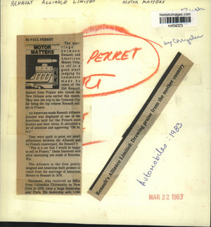 Renault's Alliance Limited: Drawing praise from the mother country. The marriage between Renault and American Motors Corporation is off to a good start judging by comments made by some of the 250 Renault dealers from France who visited the New Orleans area earlier this month. They won the trip to the Crescent City for being the top volume Renault sellers in France. An American-made Renault Alliance Limited was displayed at one of the functions held for the French auto dealers and their wives. It attracted a lot of attention and approving "Oh! la, la's." Automobiles: 1983