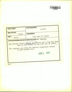 Last Day of School -- New Orleans Public School bus driver get a big hug from some of his riders on the last day of school. The students are from the Osborne Elementary School in New Orleans East