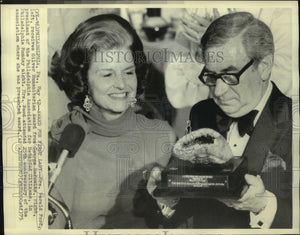 Mrs. Gerald Ford, left, receives Silver Humanitarian Award from George Horowitz, right, president of the Philadelphia Association for Retarded Citizens in Philadelphia Monday night. Mrs. Ford attended 25th anniversary of the association where she was presented award.