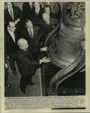 1961 Press Photo Italy's Premier Amintore Fanfani & others view Liberty Bell