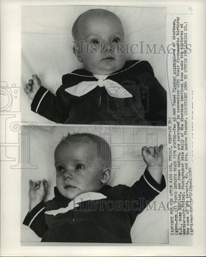 1964 Press Photo Mary Ann, top, and James Andrew Fischer on five months birthday