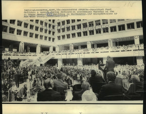 1975 Press Photo President Ford at dedication ceremony of FBI Hoover Bldg.