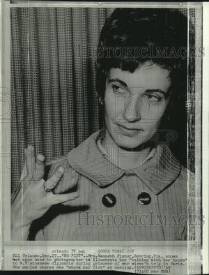 1969 Press Photo Mrs. Kenneth Fisher shows open hand to photographer - now03257