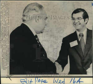 1975 Press Photo DNC Robert Strauss congratulates Donald Fowler on election