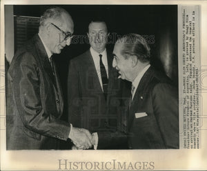 1961 Press Photo Argentine President Frondizi greeted by Slim & other at U.N.