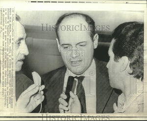 1971 Press Photo Brazilian Consul Gomide with newsmen in Montevideo, Uruguay.