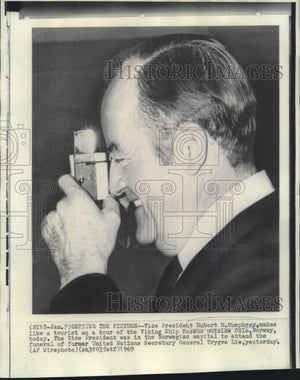 1969 Press Photo Vice President Humphrey snaps pictures at Viking Ship Museum