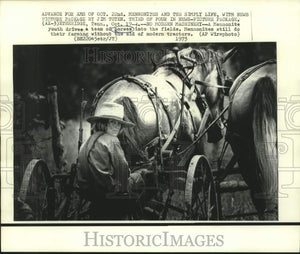 1973 Press Photo Etheridge, Tennessee Mennonite youth drives horses into field