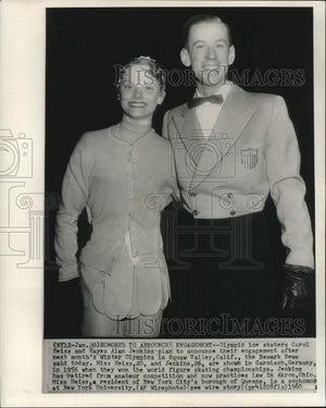 Olympic ice skaters Carol Heiss and Hayes Alan Jenkins plan to announce their engagement after next month's Winter Olympics in Squaw Valley, California, the Newark News said today. Miss Heiss, 20, and Jenkins, 26, are shown in Garmisch, Germany in 1956 when they won the world figure skating championships. Jenkins has retired from amateur competition and now practices law in Akron, Ohio. Miss Heiss, a resident of New York City's borough of Queens, is a sophomore at New York University.