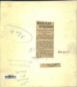 Lowell A. "Mike" Laughlin, missing blast victim sought. Laughlin believed dazed in wooded area. Friends and neighbors of Mick Laughlin stomped through the woods Monday looking for him. It was the fourth day that old classmates, fellow workers and Boy Scouts had searched for the 32-year-old plant worker, who at first had been presumed dead in a massive explosion last Thursday.