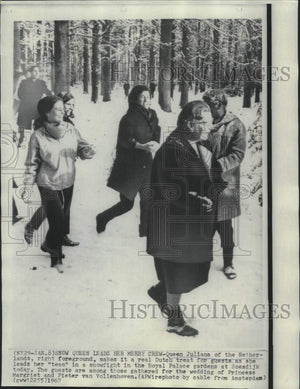 1967 Press Photo Netherlands' Queen Juliana leads "team" in snow fight at palace
