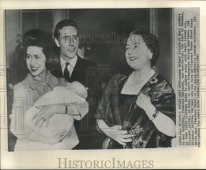 Queen Mother Elizabeth says goodbye to her daughter, Princess Margaret, and son-in-law, the Earl of Snowdon, as they leave Clarence House in London today with their infant son, Viscount Linley en route to their Kensington Palace apartment. The Princess carries the baby who was born at Clarence House about three weeks ago. Clarence House is the Queen Mother's London residence.