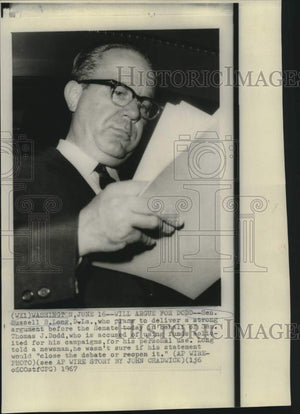 1967 Press Photo Senator Russell Long reads statement in Washington - now17486