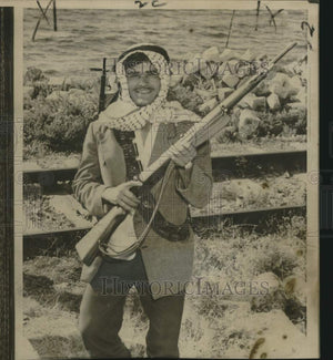 1958 Press Photo Lebanese youth guards railroad line at Sidon, Lebanon