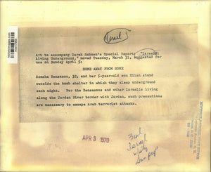 1970 Press Photo Semcha Benason and sn Eilan outside bomb shelter - now17969