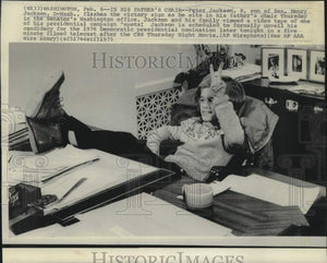 1975 Press Photo Senator Henry Jackson's son Peter flashes victory sign