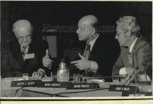 Mayor Moon Landrieu, at right, listens intently as Mayor Joseph Alioto of San Francisco emphasizes a point during Saturday's session of the economic summit meeting in Washington, D.C. At left is Representative Wright Patman of Texas. Among the nation's mayors of leading cities, mass transit was an item of utmost interest.