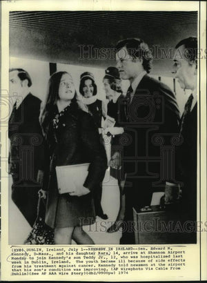1974 Press Photo Senator Edward Kennedy and Kara arrive at Dublin's Airport