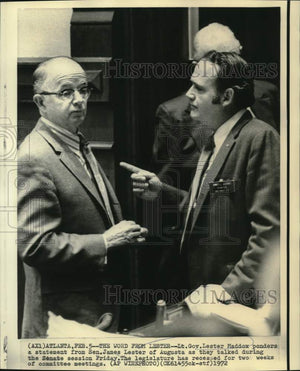Lt. Governor Lester Maddox ponders a statement from Senator James Lester of Augusta as they talked during the Senate session Friday. The legislature has recessed for two weeks of committee meetings.