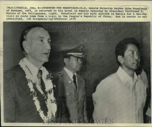 1975 Press Photo Senator Mansfield escorted to Manila hotel by President Marcos