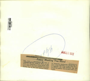 Representative Paul N. MCloskey, Jr. (left) of California and Senator Jacob K. Javits of New York meet Wednesday in Miami Beach. Both are in town for the GOP National Convention starting August 21. The GOP National Committee Wednesday unanimously rejected the request of Representative McClosky to seat a New Mexican supporter who could nominate him and present his antiwar views to next week's convention.