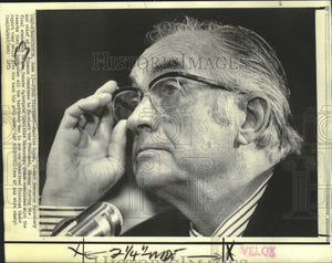 1973 Press Photo Maurice Stans pauses at Watergate hearing testimony