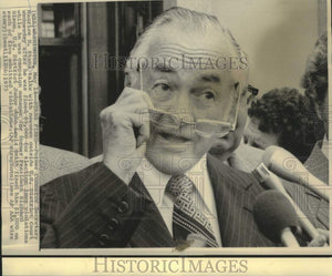 1975 Press Photo Maurice Stans with newsmen outside U.S. District Court