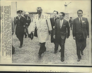 Presidents Lyndon B. Johnson of the United States and Gustavo Diaz Ordaz of Mexico inspect the Amistad Dam site on the Rio Grande north of Del Rio, Texas, and Ciudad Acuna, Mexico today. The giant dam construction is a joint project of the two nations. Others in the group are unidentified.