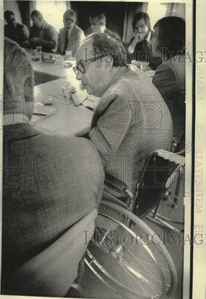 1974 Press Photo George Nalley campaigns by wheelchair in Tacoma, Washington